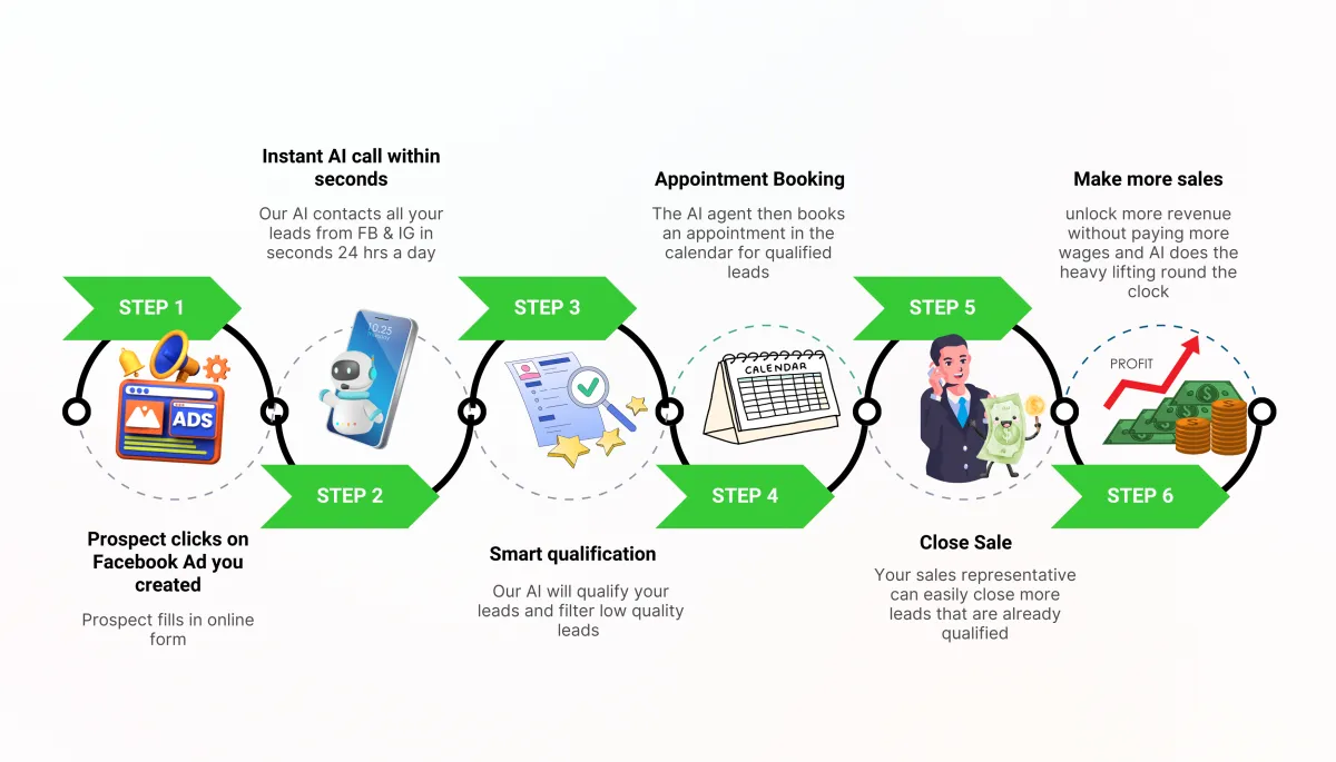 Our AI Voice Agents call every new lead from your Facebook ads within 60 seconds, qualifying, nurturing, and booking calls so your sales team closes more deals with zero wasted time..